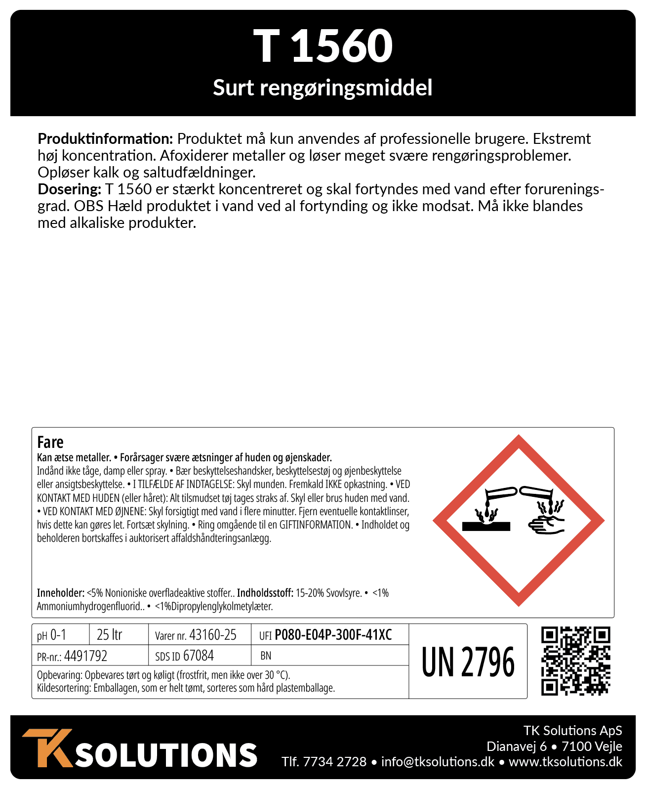 T 1560 afoxiderer metaller og løser meget svære rengøringsproblemer. Opløser kalk og saltudfældninger.